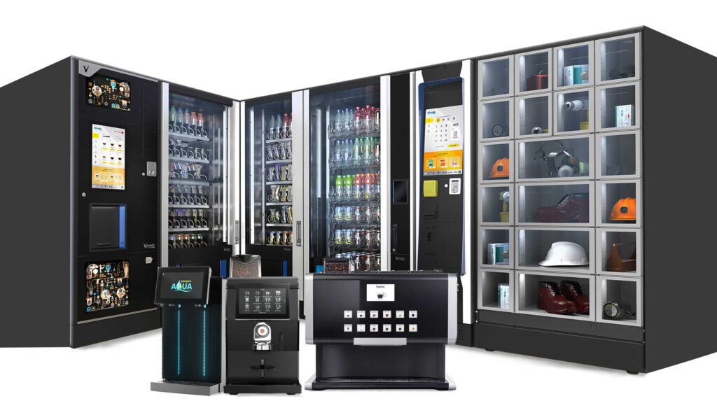 Snackautomaten, Kaffee-/Kaffeevollautomaten, Verpflegungsautomaten und Kaltgetränkautomaten.